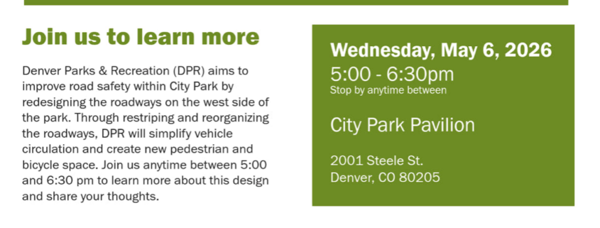 The folks at Denver Park and Rec are looking for your input as they plan new roadway updates within City Park. The public has a chance to listen and provide their own input.